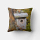 Denna unika kvalitetskudde har samma fågelhus på båda sidor om kudden. Den ena bilden är fågelhuset i vår och den andra är fågelhuset i fall.