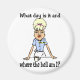 Sue den stenfärgade designen på mugg-skjortor etc. med Sue som frågar vilken dag det är och var i helvete är hon?
