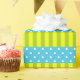 Inspinerad av roligt vår färg har den här patienten en ljus grönt och blått. Polka dots och rand tillsammans gör en vacker design.