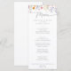 Denna vår färgrika vildbloms middagsmeny kort är perfekt för en rustik bröllop. Designen har en elegant kalligrafi skrift, som läser bröllop i dämpad grå, handmålad akvarell lila, violett, burgunder, röd, rosa, rosaton, gula vildblommor, gröna blad sammansatta till ett sömlöst blommönster.