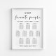 Ett modernt nedladdningsbart sittdiagram i bröllop poster för upp till 10 bord med "Vårt favoritfolk" i ett chic och en enkel typografi och ditt namn och bröllop gått med tillsammans av ett hjärta. Välj det digitala nedladdningsalternativet om du vill redigera med ändringar i sista minuten och skriva ut lokalt.