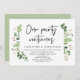 Modern svart skript, sommarträdgård grönska lövrik tema, bröllopsinbjudan för de som rymmer (Vår fest fortsätter). Det är perfekt för din mottagning efter bröllopet / efterbröllopsfest. Lägg till dina detaljer i matchande svart teckensnitt / bokstäver.