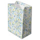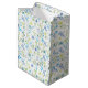 Gråväska med ljusa, roliga vår-blomskudlar mönster i blått och grönt nyanser.