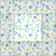 Fabric med ljusa, roliga vår-blommor doodle mönster i blått och grönt.