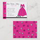 Ett vackert affärskort för en stilist med tre vackra klänningar och en mängd vackra tillbehör.