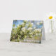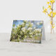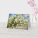 Det här diagrammet visar min originalfotografiska teckning, som är mitt foto av en träd-blomning med vita blommar i Vår. Jag använde en texturerad och illustrerad målarteknik på ge för att göra det till ett konstnärligt fläkt. På kortets framsida, stater, "Birthday Greetings!" och insidan av kortet stater "Här hoppas du på din speciella dag vår med roligt och glädje! Grattis på födelsedagen!" Ett underbart kort för någon med Vår-årsjubileum eller blomma älskare.