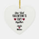 Vår första Alla hjärtans dag tillsammans ett par keramiska prydnadsföremål. Personlig med prydnadsföremål med modern typografi och trendig som säger Vår första Alla hjärtans dag tillsammans, tre hjärtan och namn. Lägg till namn och ge en fin gåva till en flickvän eller pojkvän.