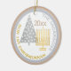 Anpassa den här chicen VÅRT FÖRSTA CHRISMUKKAH-prydnadsämne med ditt namn, år och foto för en typ av familjesammans. Från guld-tonen Hanukkah-menorah till silver-tonen Julgran kommer detta vita, silvra grått och varma rostade mandeltan-ornament att hedra minnet av ert första blandade helgdag. Ladda upp fotot på baksidan med den lättåtkomliga användan av fotomallen och lägg till ditt namn och året på framsidan. "VÅR 1ST CHRISMUKKAH" kan också anpassas för att byta ut VÅR mot MY för en baby eller ett barns version eller redigera till ett mer generiskt LYCKLIG CHRISMUKKAH hälsning. Skapa din egen anpassningsbar First Chrismukkah prydnadsföremål för dig själv eller som en personlig gåva till blandade familjer.