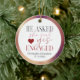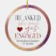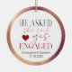 Modern typografi med faux ro guld foil gräns. Snyggt och chic julprydnad för engagerat par. Han frågade.. hon sa ja...förlovad. Monogrammat med namn och datum för förlovning. Underbart minneskeepsaki.