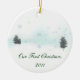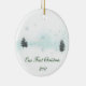 Ett enkelt men eleganten landskap på en prydnad som firar minnet av "vår första jul.