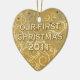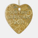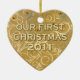 Vår första prydnad för jul 2011 med en elegant prydde med ädelsten guld- hjärta. Den härliga prydnaden skrivs ut på båda sidor.