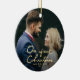 En vacker julklapp till nygifta. Den här julhelgen skickar du ut den vackra fotojulprydnaden till nygifta för att hedra deras bröllop. Utsmyckningen har "Vår första jul" i ett vackert handskrivet faux guld-teckensnitt med plats för ett foto. Anpassa utskriften genom att ersätta foton och text. För bästa resultat användor du ett foto som beskärs till en kvadratisk form. Fler stilar och matchningsomslag, porto frimärke, papper presentomslagning osv. finns också i vår butik.Kontakta designern direkt om du har en designanpassningsbegäran.