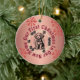 Vår första jul i vår nya goldendoodle-skiss över guld keramiska prydnadsföremål i ro. Kolla in baksidan för att se var du kan lägga till dina egna personliga kommentarer.