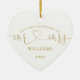 Den här chicen har den moderna kärlek-hjärtskripttypografin, och vår första prydnadsprydnad under julen kan vara personlig med ditt gifta namn, datum och första namn och foto på motsatt sida. Designad av Thisisnotme©