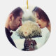 Vår första jul, mr. Och mrs First Married Photo Ceramic Ornament med en blommigt krans av lush-blommor och bär på framsidan och Bride och Groom's foto på baksidan. Du kan enkelt anpassa ditt mycket speciella prydnadsföremål med Zazzles enkla att använda verktyg. Fråga om du behöver hjälp.