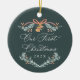Fira din första högsäsong som ett gift par med detta eleganta ”Vår första jul” fotoornament. Med graciösa skrivstilstext och festliga vattenfärgstillbehör som tallgrenar, järnek, gyllene klockor och en klassisk rosett, kommer denna design att bli en perfekt souvenir från er första jul som nygifta.