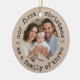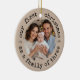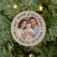 Varm, rustik, rund ornament med en kraftfälg och ett mjukt penseldrag. Den kurvformade texten lyder "våra första julklappar som en familj av tre", med det delade året på sidorna för en balanserad, klassisk layout. Perfekt för nya föräldrar som markerar baby första helgdag och för gåvor till mor- och farföräldrar. Byt foto i familjen och ställ in året för att skapa en mysigt keepy som ser underbar ut på alla träd eller presentboxar.