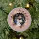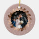 Elegant och modern personlig Första julprydnadsföremål med vackra faux-koppar-guld-julfransar och lilla snöflingor. Anpassa produkten med ditt favoritfoto från bröllop, namn och ett datum.