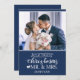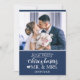 Fira din första jul gift som mr och Mrs med det här söta helgdag med en fotomall för anpassadet och en underbar bildtext i vitt trendig typsnitt över en blå bakgrund.