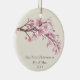 Gifte du dig i år? Lägg till ett minne i träd med den här elegant blommigten keepsaké keramisk prydnadsprodukt med en gren som består av vattenfärgade färgade blommor av rosa-körsbärsblommor på översta sidan över en elfenbensbakgrund. Här följer budskapet: "Vår första jul som Mr och Mrs." och året i bröllop. Denna chic prydnadsföremål ger också en underbar gåva till ett nytt par under deras första jul.