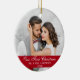 Vår första julbröllopsfoto röd julgransprydnad keramik