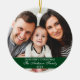 Elegant Script Vår första julfamiljs fotofamiljs Grönt Ornamet med Snöflingor tillbaka