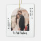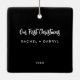 Vår första julfotopapplåd med minimalt skript julgransprydnad keramik