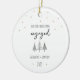 Underbara svarta och vita träd- och kopparstjärnor med handskriven text gör detta prydnadsföremål till en vacker keepé för det nygifta paret. Lägg till ett speciellt foto på baksidan! Tillsammans med frasen Vår första jul som Mr. och Mrs. tillsammans med namn och året gör detta till en underbar gåva som de alltid kommer att minnas. Se samordna saker i vår butik, Enchanted Finch.