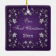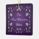 Kom ihåg din speciella dag varje jul med denna vackra lila keramiska dekoration med simulerade blommor och viner från silver på framsidan och ett par simulerade glitter och tryckt på diamanter gått med hjärtbroschyrer. Anpassade text på framsidan och baksidan som du kan anpassa hur du vill. ****NOTERAR att detta var designat för den fyrkantiga ornamenten. Om du ändrar det till en annan form kan en del inslag vara avskurna vid utskrift.
