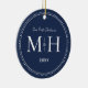 Vår första julklapp, Monogram marinblått Julgransprydnad Keramik