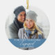 Vår första julmålade fotoljusblå julgransprydnad keramik