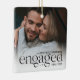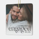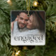 Den här vackra ornament-visningen är ett favoritfoto på vardera eleganten för hela förlovningen. "Vår första jul är upptagen" överlagd med svarta bokstäver som är accentuerade med stjärnor. Anpassa med initialer och året.