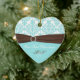 Denna hjärtformade keramiska prydnad matchar blåttdamasten med den bruna bröllopinbjudan som finnas på denna plats, och skulle gör en trevlig minnessak av din speciella dag.