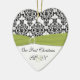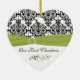 Denna hjärtformade keramiska prydnad matchar grönten, viten och den svart damastast visade nedanfört för bröllop samlingen, och skulle gör en trevlig minnessak av din speciella dag.