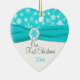 Minns din speciella dag med denna härliga turkos- och vitsnöflingor, hjärtformade keramisk prydnad med en medaljong för band och för snowflake för aquablåttFAUX. Du kan skräddarsy texten till den spelar ingen roll något att säga dig wishen. Den matchar också turkos- och vitsnöflingor som gifta sig samlingen visat nedanfört.