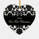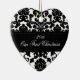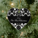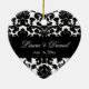 Denna svartvita damastast hjärtformade keramiska prydnad matchar bröllopsamlingen på denna plats, och skulle gör en trevlig minnessak av din speciella dag.