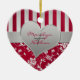 Denna hjärtformade keramiska prydnad matchar rött och försilvrar blom- hjärtor som gifta sig inbjudan visat nedanfört, och skulle gör en trevlig minnessak av din speciella dag.