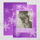 En underbar, modern helgdag-kortdesign med en snygg lila med intrikat vitt snöflingor. Med det här anpassadet kan du lägga till ett familjefoto och texten "Vår första jul" i ett flytande kursivt skript, tillsammans med familjen namn och året för en personlig beröring. Perfekt för nyfödda att fira sin första jul tillsammans, detta keepsakskort är ett hjärtligt sätt att hedra minnet av deras första julhelg som gifta par. Det är en idealisk gåva eller hälsning för säsongen, som ger tillfälle värme och glädje.