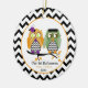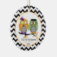 En Halloween prydnad som presenterar två ugglor som sitter på händer för ett trädgreninnehav. Den kvinnliga ugglan är orange, och den male ugglan är grön. Båda har svart- och whtiesparrebukar. Bakgrund är den svartvita sparren. Personifiera med ditt namn. Sök efter att matcha objekt på Jill'sPaperie.