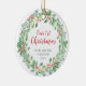 Gifte du dig i år? Lägg till ett minne i träd med denna ornament för den ornamiska keepsaken med en enkel utformning av eleganten med en krans bestående av vattenfärgade gröna, röda hullbär och "Vår första jul som Mr. och Mrs." tillsammans med ert efternamn och år i grönt. Denna moderna prydnad ger också en underbar gåva till ett nygift par inför deras första jul.