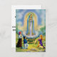 Detta vackra bönekort har en illustration av Vår Fru av Fatima som framträder för tre herdebarn, Jacinta, Lucia och Francisco, i Fatima, Portugal år 1917.