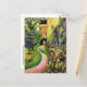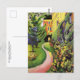 Ett vykort med landskapsmålning, The Garden with Flower Beds in Bloom (1912), av den tyska konstnären August Macke (1887-1914) som borttappad sitt liv i WWI. En blommande blomsterträdgård och väg framför ett gult hus.