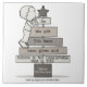 Lille Boy står på ett bord med en hammare i handen när han justerar en stjärna på toppen av det Julgran han har byggt. På varje plank står det: "Var den gåva du har fått och tro på det otroliga som är du!" Grund-segmentet säger: "God jul!" ©Little Boy, Big Dreams, LLC och David A. Carrizales och teckningar av © Christie Black of Creations from the Heart.