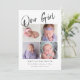 Ett modernt och enkelt födelseattest för ett flicka med en handskriven kalligrafitext där det står "vår tjej" överst. Det finns fyra fyrkantiga bilder på framsidan och ett annat bild på baksidan. Du kan också lägga till ett meddelande på baksidan av kortet.