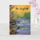Vibrant färger från sol lyfter upp det här kortet och visar önskemål att du är Glatt! Den glödande solnedgången med en gräs träd och sjö skapades från min ursprungliga vattenfärgsmålning. gult, blått och grönt ger inspirationskänsla som ett komplement till den bibelvänliga vers från Nehemiah 8:10. Den glatt versen "Behålla ansikte mot solsken och skuggorna kommer att falla efter" trycks på kortets insida.