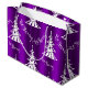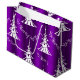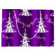 En dekorativ julklapp i lila med ett mönster i det moderna Julgranar i vitt, med det festliga hälsningen "Var ärliga" spridd runt dem.