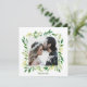 De här bröllop-fototackkorten är ett enkelt och klassligt sätt att ta perfekten till ge tack vare alla som gjorde er stora dag speciell. Innehåller en grön ram av dill, mynta, rosmarin, timjan, persilja, oliv gren och andra löv runt en fotomall och grönt som är helt anpassade. Baksidan har örterna i ett mönster-formulär, ett ramruteområde och anpassadets grönt-typografi i ett tackmeddelande.