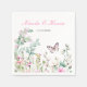 Söt bröllop napkin med vilda blommor i rosa och söta fjärilar. Perfekt för vår eller sommar bröllop. Ord kan ändras till kostym med dina egna uppgifter eller krav