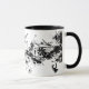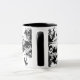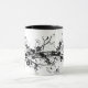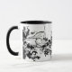En inking konst av att blomma blommar över muggen.