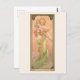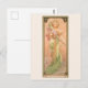 Ett vykort i mode med illustration av brans konst från Art nouveau Period, Vår (1900), av Alphonse Mucha (1860-1939), en tjeckisk konstnär. En kvinna i en grönt klänning med en blombukett för att personifiera vår-säsongen. Seasons eller Four Seasons Series är namn i tre olika litografiserier från färg som produceras av konstnären. De tillverkades 1896, 1897 och 1900.
